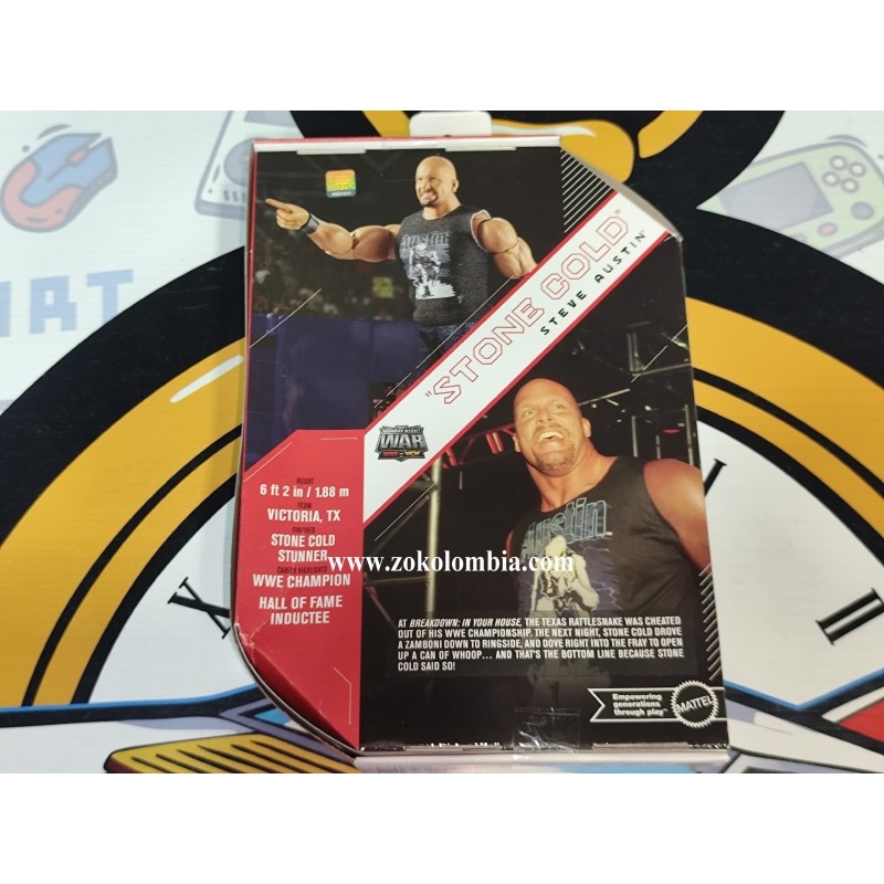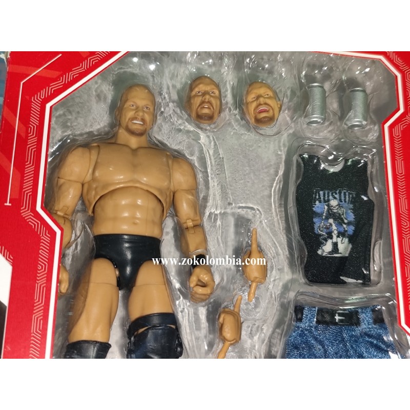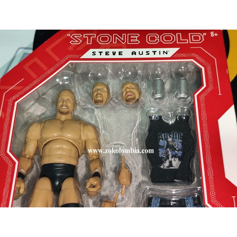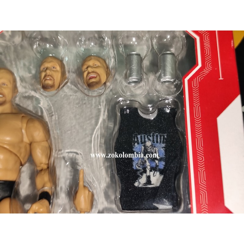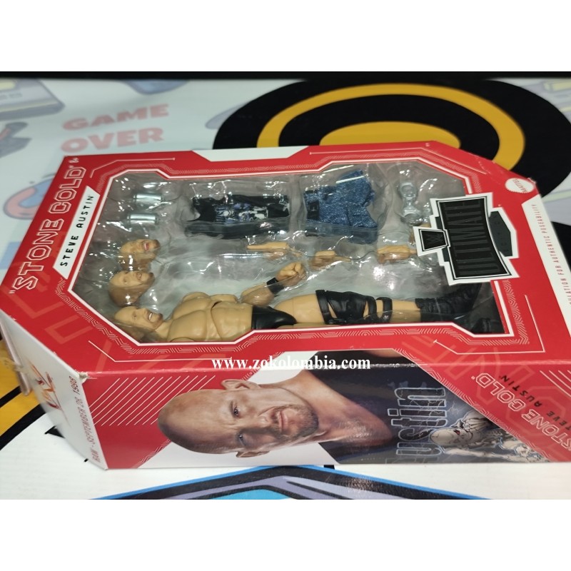 Austin, una pieza premium diseñada por Mattel con máxima articulación, múltiples accesorios y acabado de colección. Esta es la versión más completa y realista del legendario Stone Cold, ideal para exhibir, coleccionar o recrear sus momentos más icónicos en el ring.