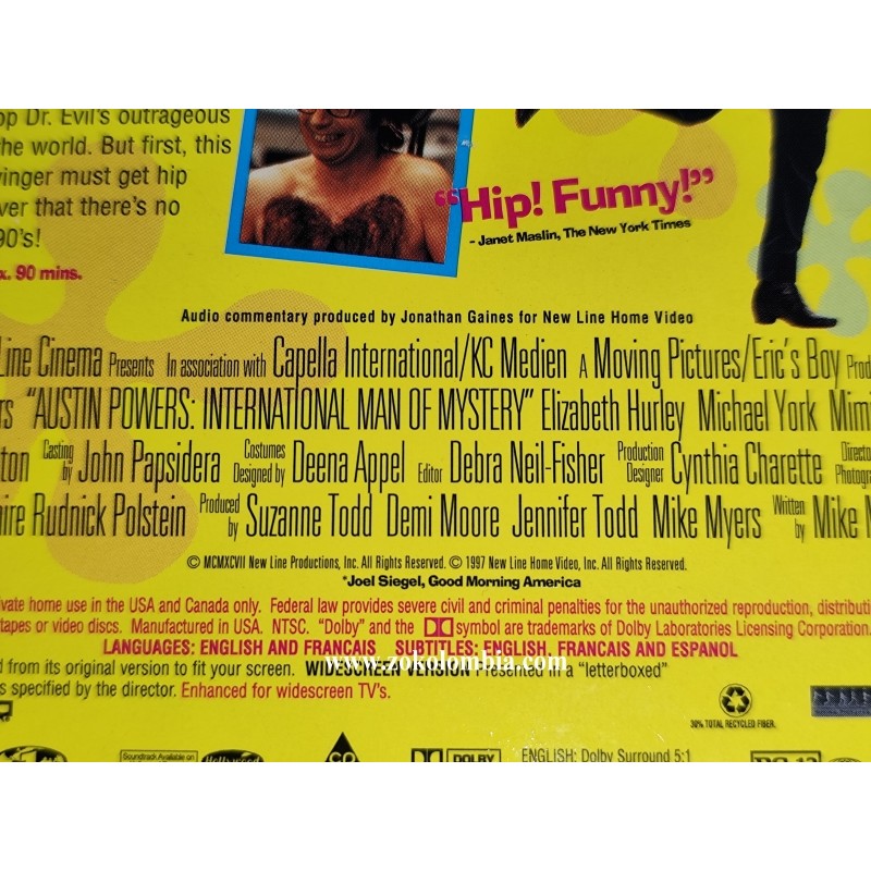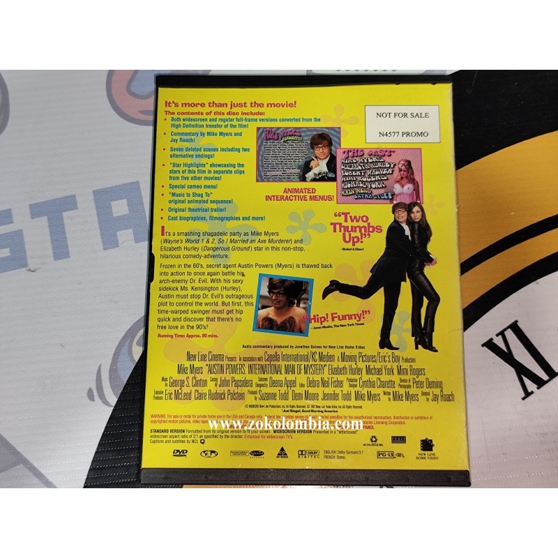 Formato DVD Video original. Título Austin Powers: International Man of Mystery. Protagonistas Mike Myers y Elizabeth Hurley. Estudio New Line Cinema. Colección New Line Platinum Series. Género Comedia / Parodia / Espionaje. Duración aproximada 90 minutos. Clasificación PG-13. Idiomas Inglés. Subtítulos Inglés, Francés y Español. Versión Widescreen. Incluye contenido adicional como menús animados interactivos, escenas eliminadas, comentarios del director y del elenco, tráilers originales, galerías y material extra exclusivo!