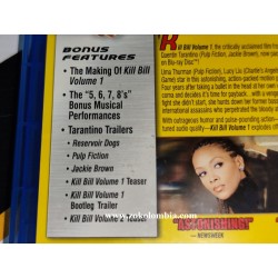 Extras incluidos: Making of de Kill Bill Volume 1, presentaciones musicales 5,6,7,8’s, tráilers de Tarantino, avances de Reservoir Dogs, Pulp Fiction, Jackie Brown, teaser de Kill Bill Vol. 1 y Vol. 2, entre otros contenidos adicionales