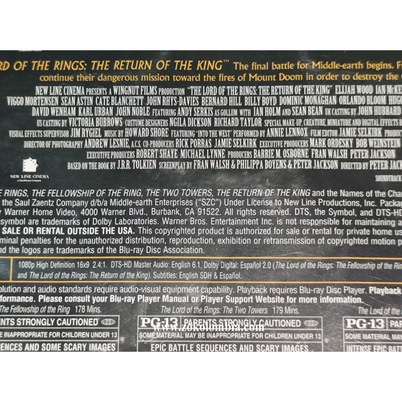 Edición original en formato Blu-ray de la trilogía completa The Lord of the Rings en sus versiones cinematográficas, presentada en un solo estuche con las tres películas que marcaron un antes y un después en el cine de fantasía épica. Esta colección reúne las icónicas obras dirigidas por Peter Jackson, basadas en las novelas de J.R.R. Tolkien, con una calidad de imagen y sonido en alta definición que realza cada escenario, batalla y detalle de la Tierra Media. Un título imprescindible para coleccionistas y verdaderos fanáticos del cine épico!
