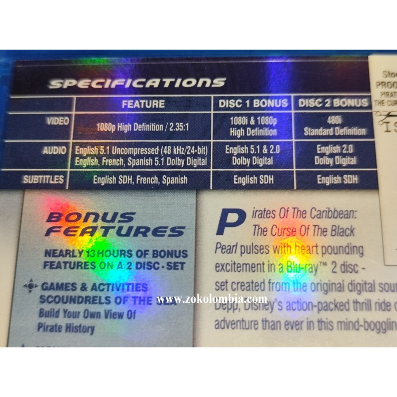 Piratas del Caribe La Maldición del Perla Negra Blu-ray original