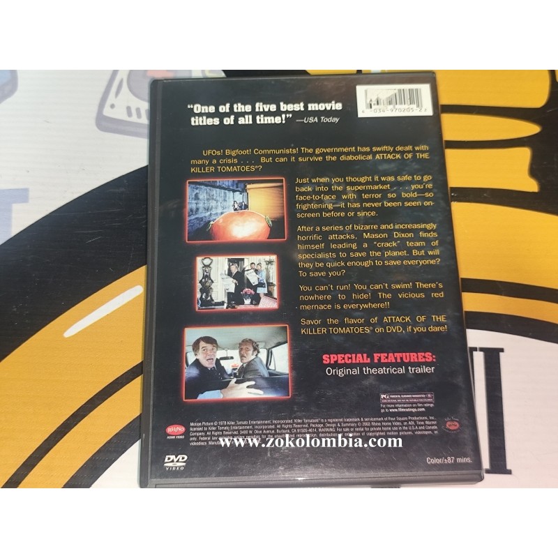 Película original en formato DVD Attack of the Killer Tomatoes – 25th Anniversary Edition, una comedia de terror de culto que se convirtió en un clásico absoluto del cine serie B. Esta edición conmemorativa celebra 25 años de una de las películas más absurdas, divertidas y recordadas del cine independiente, ideal para coleccionistas y amantes del cine retro!!!