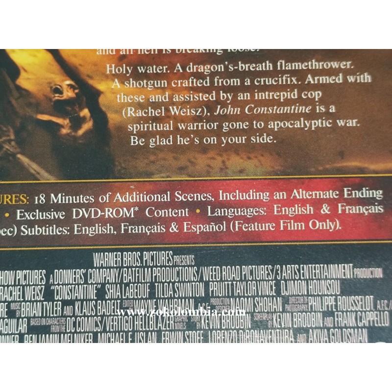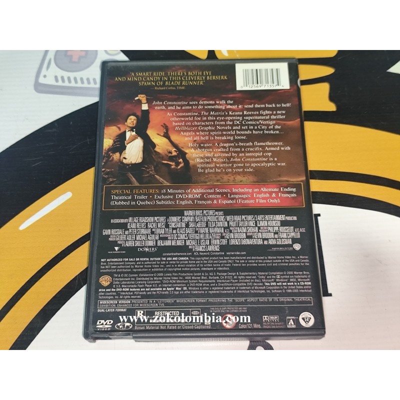 DVD original de la película Constantine Widescreen Edition, protagonizada por Keanu Reeves. Edición en formato DVD con carátula original y presentación física estándar, ideal para coleccionistas y fanáticos del cine de acción, terror y fantasía oscura. Producto auténtico, no es copia ni reproducción.