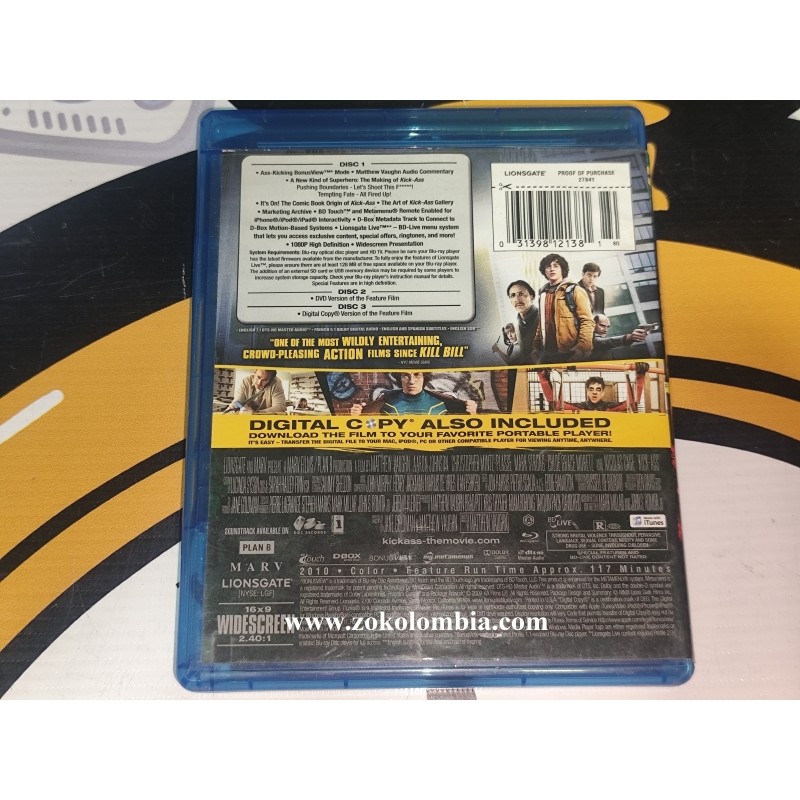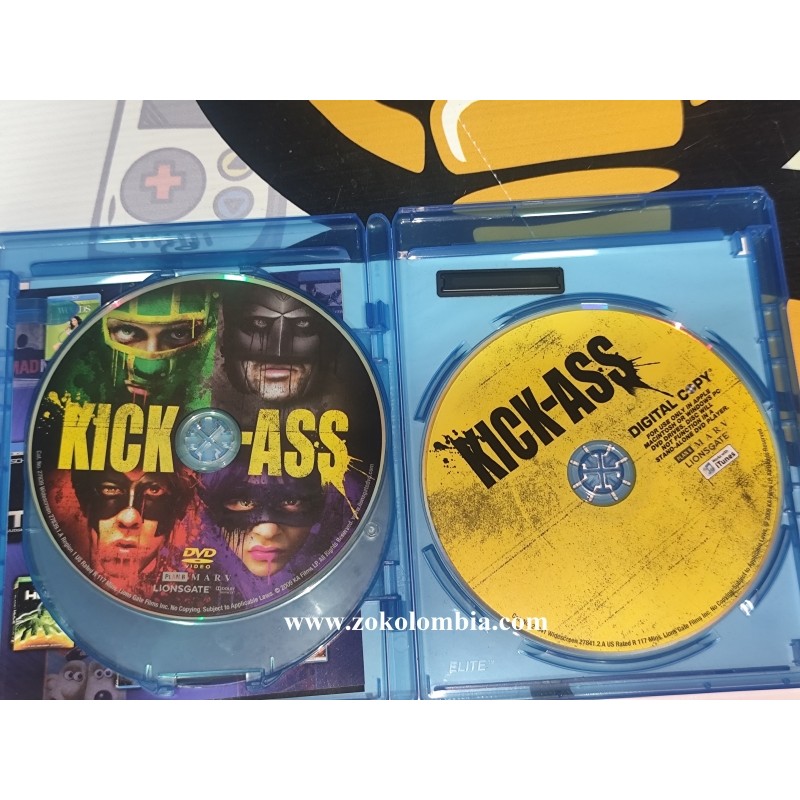 Película Kick-Ass en formato Blu-ray + DVD + Digital Copy, una edición original y completa que combina acción extrema, comedia irreverente y un estilo visual único. Esta versión incluye estuche Blu-ray azul original y los discos correspondientes, ideal tanto para coleccionistas como para fanáticos del cine de superhéroes con un enfoque diferente y adulto.