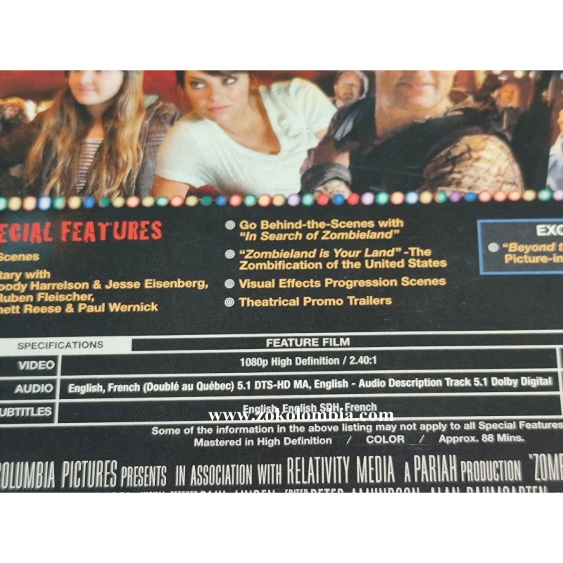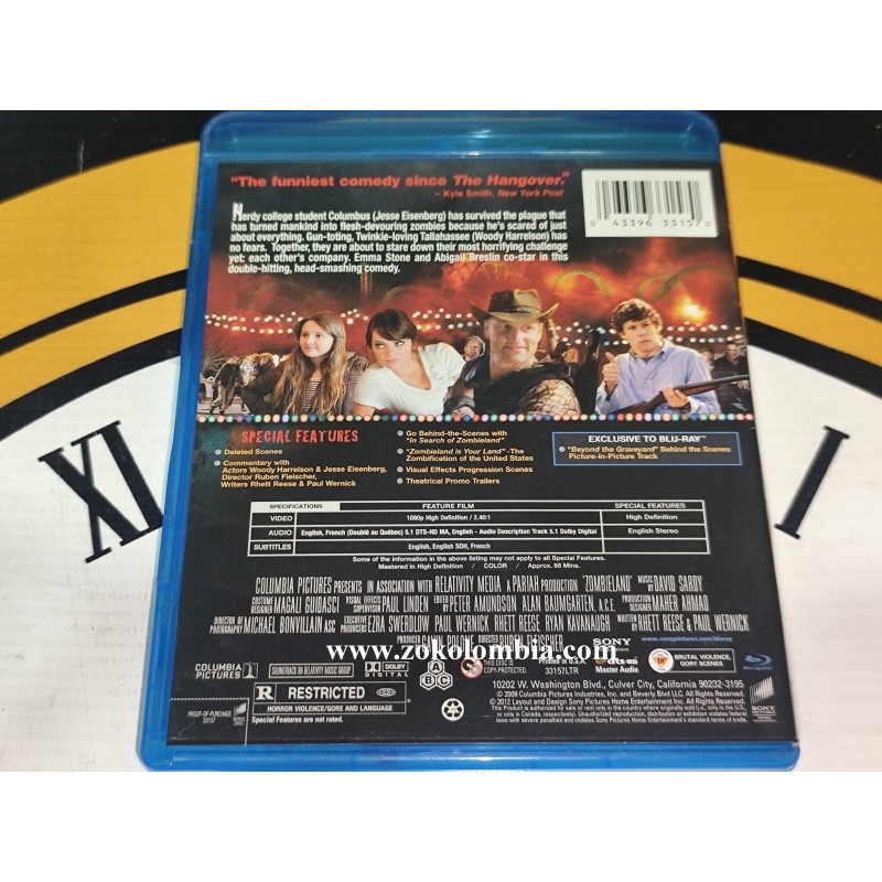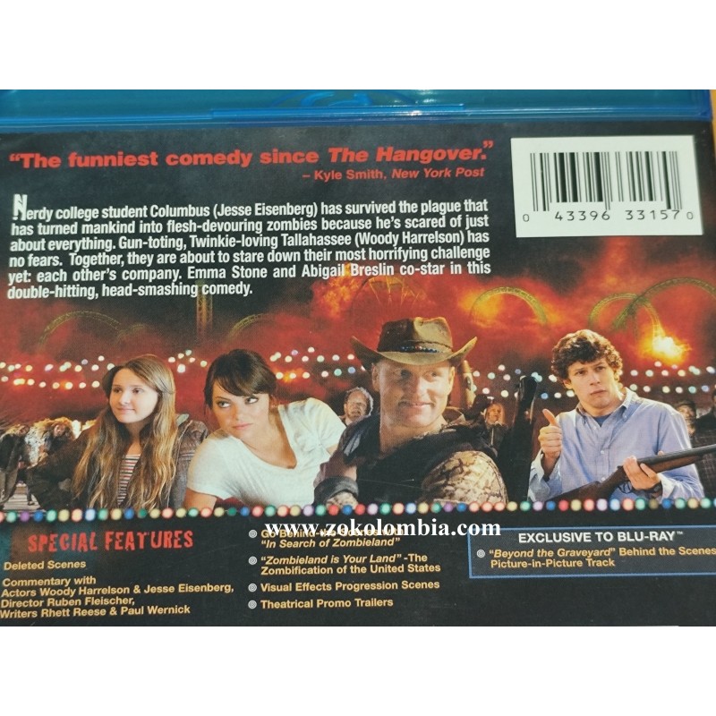 Película original en formato Blu-ray de Zombieland, una de las comedias de zombis más exitosas y recordadas del cine moderno. Protagonizada por Woody Harrelson, Jesse Eisenberg, Emma Stone y Abigail Breslin, esta edición ofrece alta calidad de imagen y sonido, ideal para fans del cine, coleccionistas y amantes del humor negro con acción.
