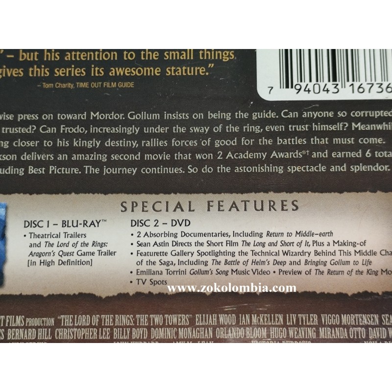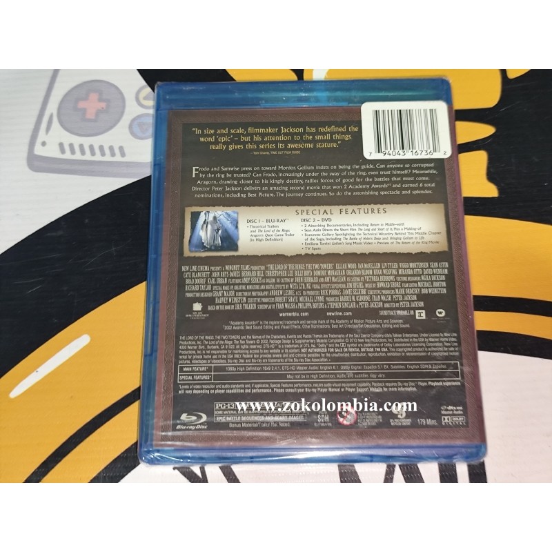 Película original en formato Blu-ray + DVD, correspondiente a el señor de los anillos las dos torres. Presentación en estuche Blu-ray color azul con carátula original a todo color, ideal para coleccionistas y fanáticos de la saga. Edición Widescreen con excelente calidad de imagen y sonido, tal como se aprecia en las imágenes reales del producto.