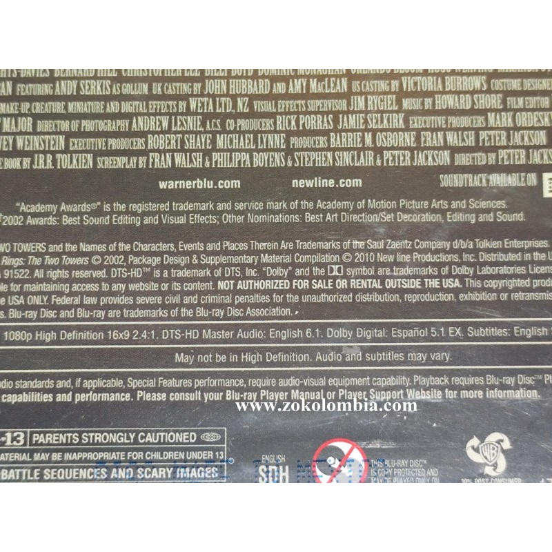 El Señor de los Anillos las 2 Torres Sellada original Blu-ray y DVD