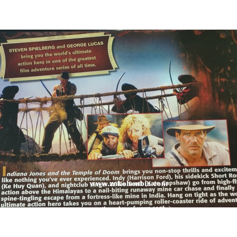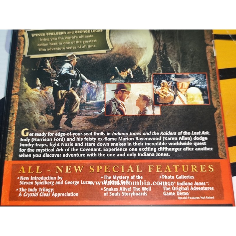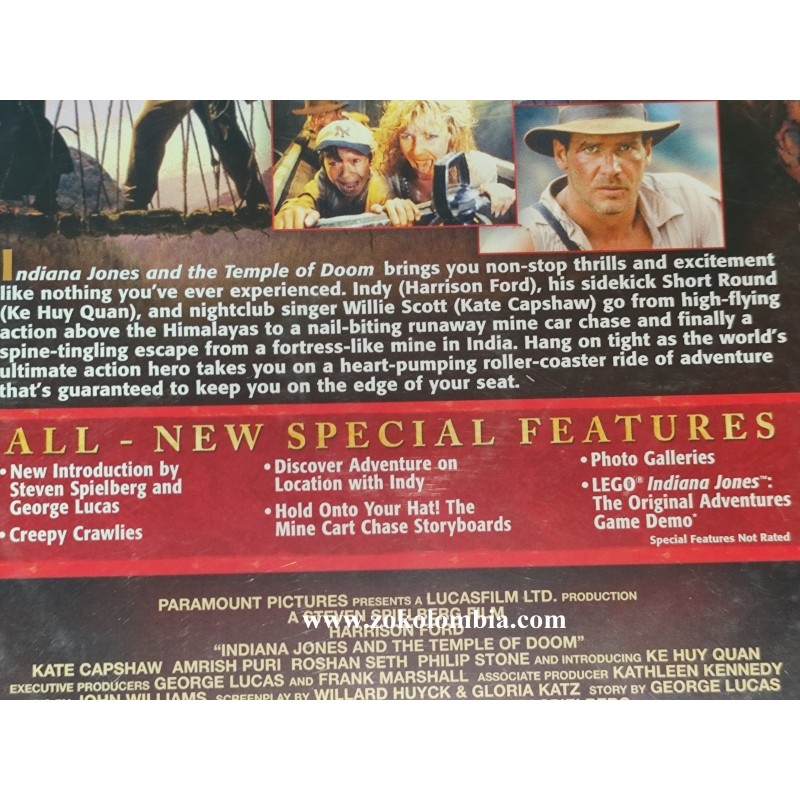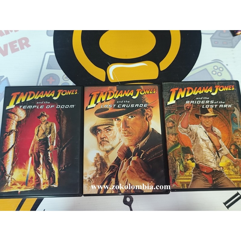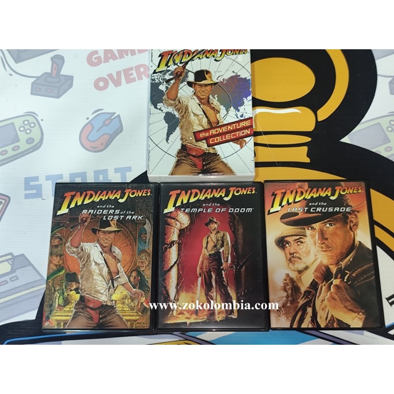 Incluye las películas en formato DVD con presentación widescreen, material adicional y carátulas originales, conservando el estilo icónico de la saga creada por Steven Spielberg y George Lucas.