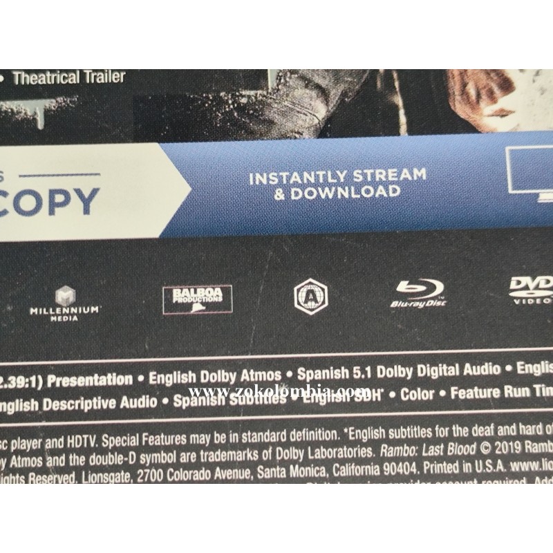 Película original en formato Blu-ray + DVD + Digital de Rambo: Last Blood, protagonizada por Sylvester Stallone. Esta edición combina alta definición en Blu-ray, formato DVD estándar y copia digital, presentada en estuche original con carátula completa. Ideal para coleccionistas y fanáticos del cine de acción clásico.