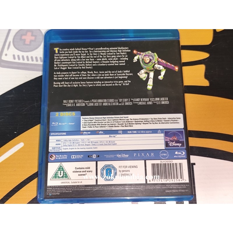 Película original Toy Story 3 en formato Blu-ray, una de las entregas más queridas de Disney•Pixar, presentada en estuche azul original. Esta edición ofrece una experiencia visual y sonora en alta definición, ideal tanto para disfrutar en familia como para coleccionistas de cine animado. Producto auténtico, con carátula original y diseño oficial de estudio.