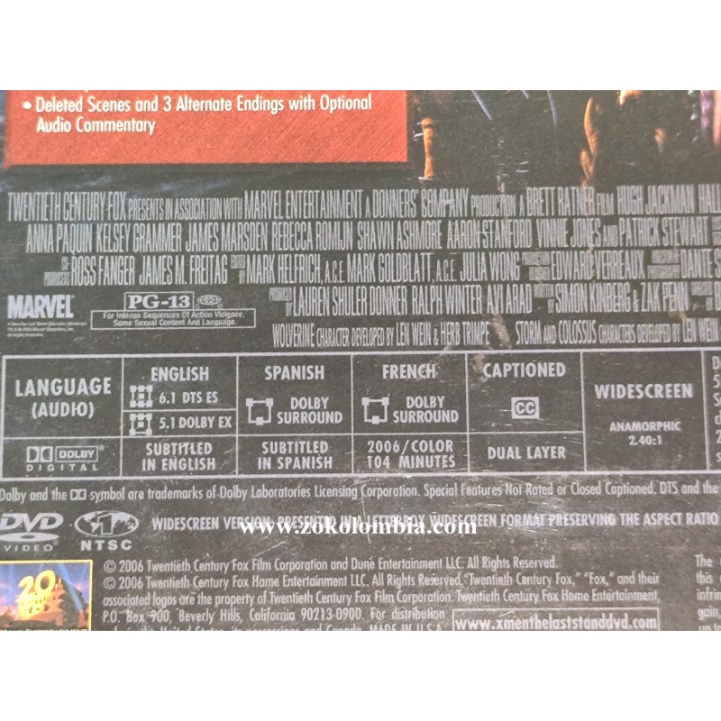 Incluye la película X-Men: The Last Stand en formato DVD widescreen.