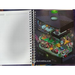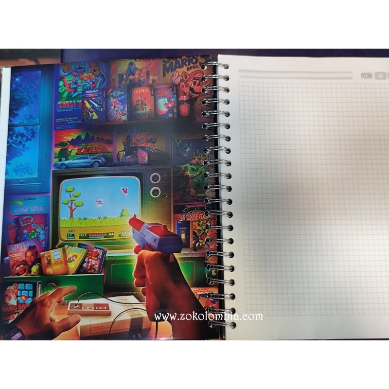 Este cuaderno es mucho más que un artículo escolar: es una pieza que rinde homenaje a la era dorada de los videojuegos y el cine. Desde su portada ilustrada estilo pixel art hasta sus páginas internas con diseños especiales, está pensado para fanáticos del cine, mundo gamer, lo retro y la cultura pop clásica, sin dejar de lado la comodidad y organización que exige el estudio diario.