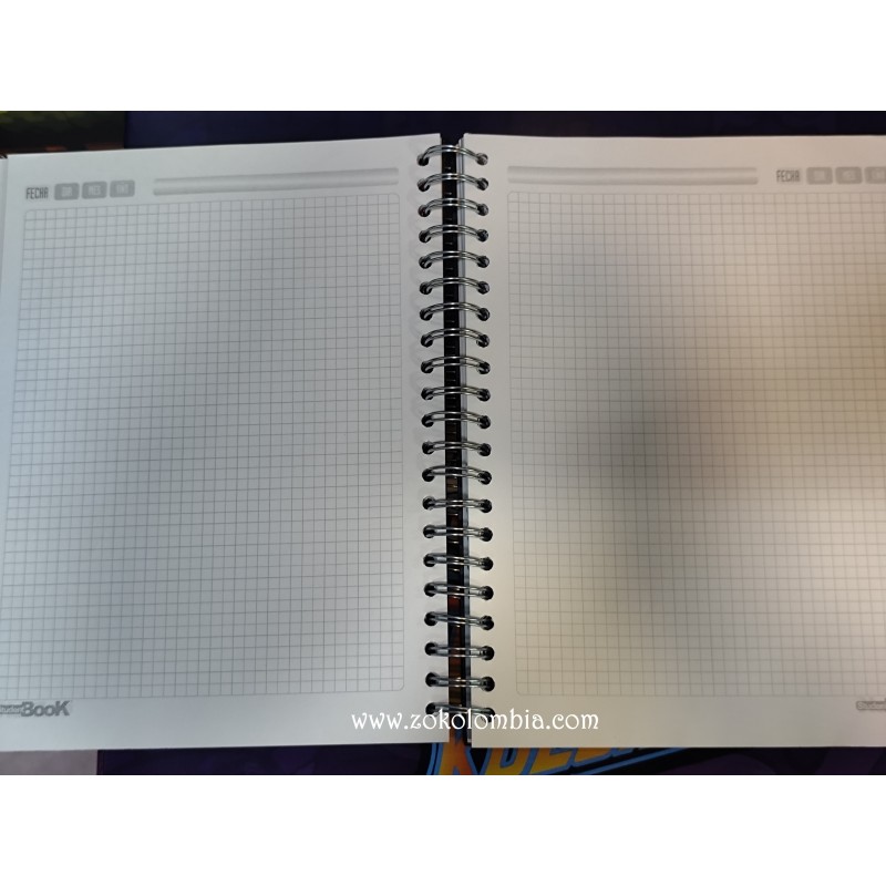 Hojas internas cuadriculadas con encabezado para fecha, facilitando la toma de apuntes.