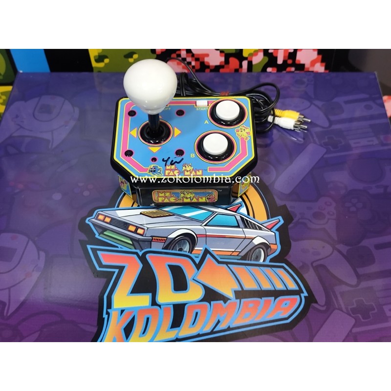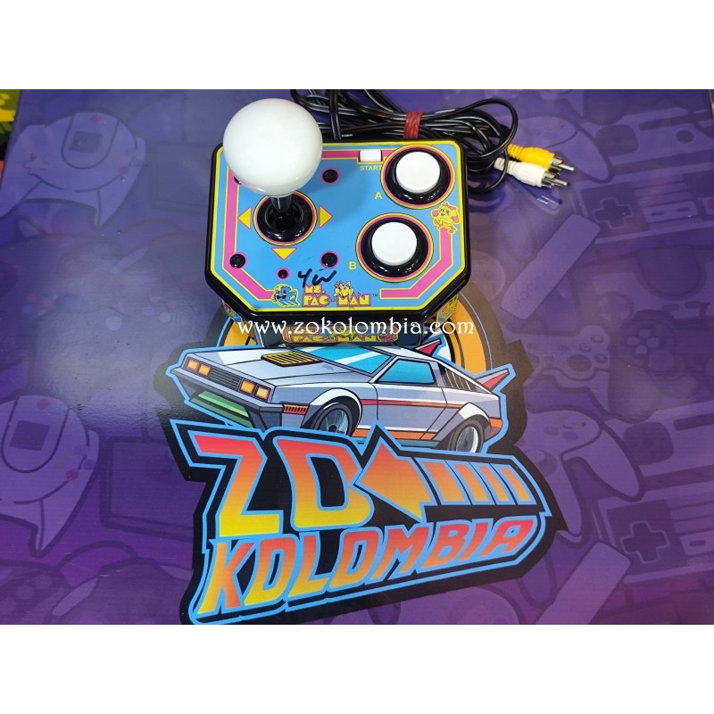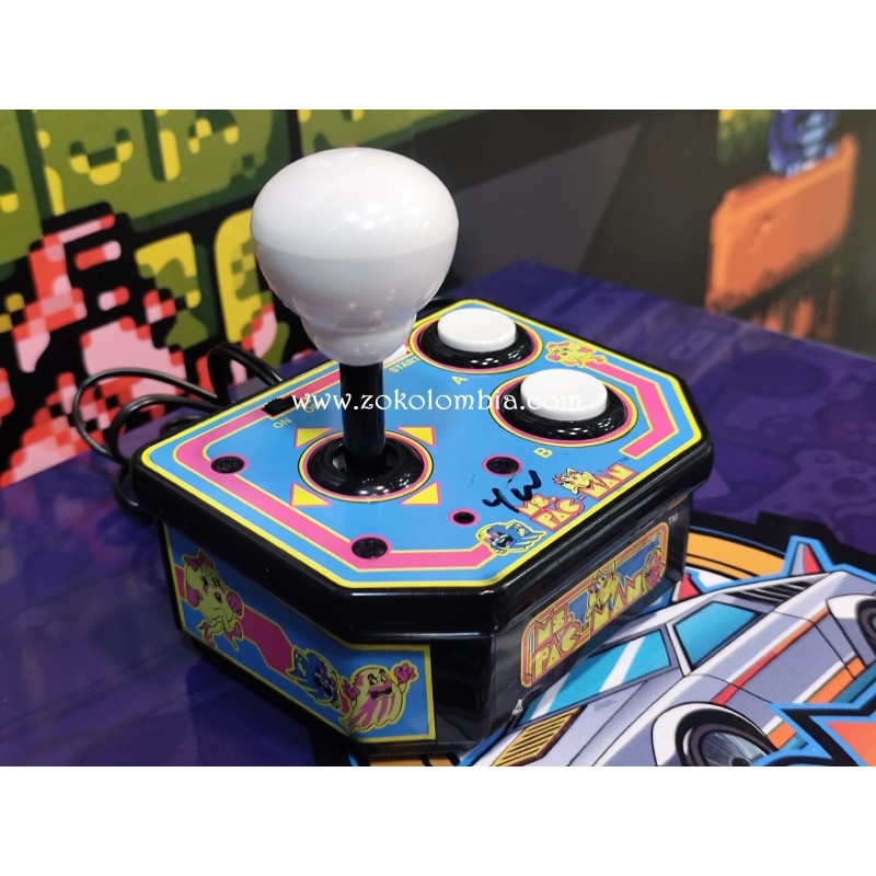Este control tipo arcade cuenta con joystick de palanca y dos botones de acción, conservando el estilo y colores originales de Ms. Pac-Man. Funciona mediante conexión AV (audio y video). Opera con 3 baterías AA, lo que lo hace completamente portátil. Producto con licencia oficial de Bandai Namco, fabricado para entretenimiento doméstico.
